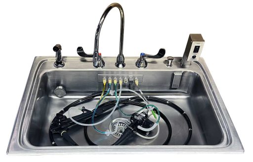The Scope-Assist Flushing Sink is designed to mechanically assist the channel flushing portion of the endoscope’s manual cleaning process.